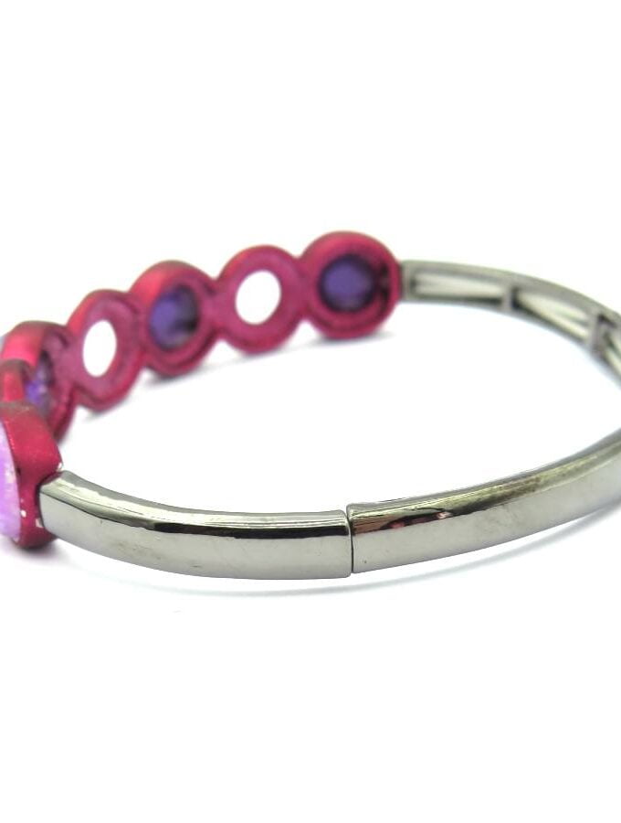 Smalle armband met halfronde delen met rode en paarse vlakken