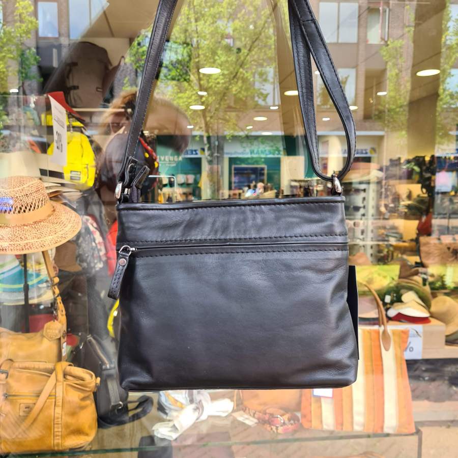 Zwarte leren Berba 005-330 Soft schoudertasje vierkant