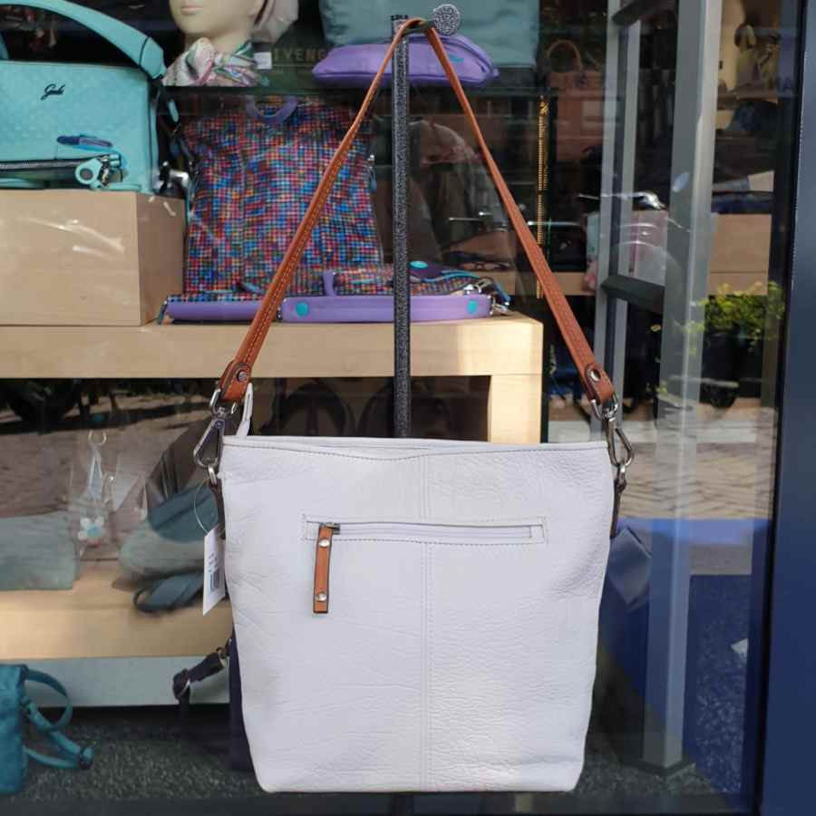 Wit leren schoudertasje met cognac afgewerkt van het Nederlandse merk Berba