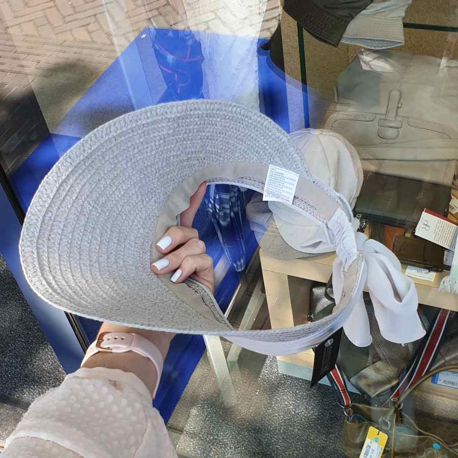 Brede en grote zonneklep die helemaal rondom het gezicht loopt en daarom de beste bescherming biedt tegen de zon. Doordat de bovenkant open is, kan de wind lekker door je haren waaien, zonder dat je haren plat worden. De klep is met de strik aan de achterkant strakker te maken.