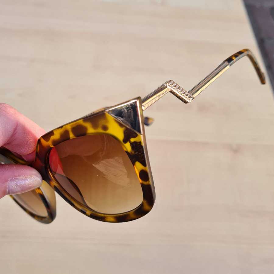 Zonnebril met luipaard print montuur en goudkleurige hoeken
