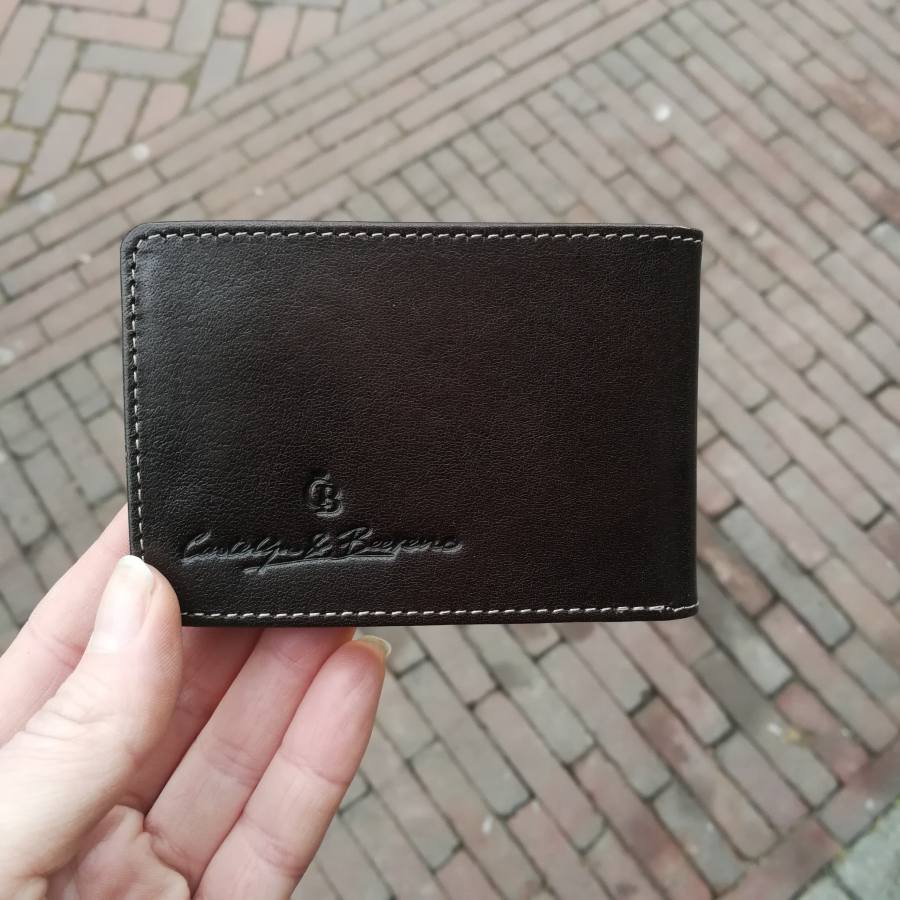 Donkerbruin mapje voor pasjes van stevig stierenleer met RFID bescherming