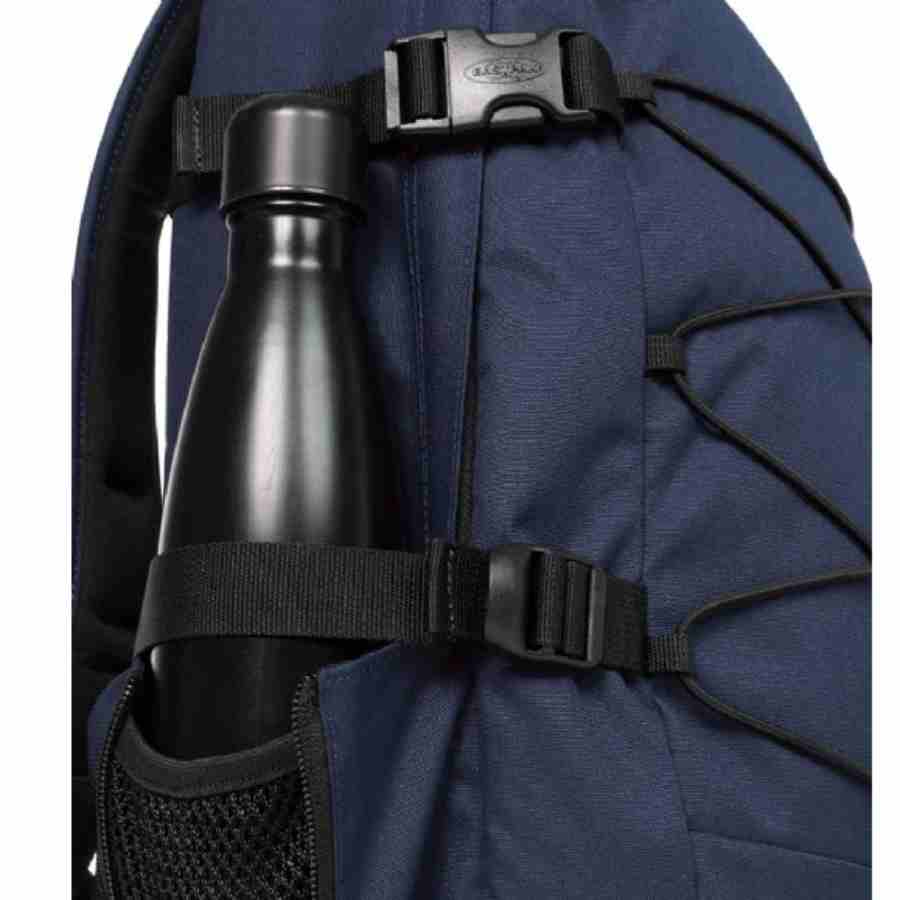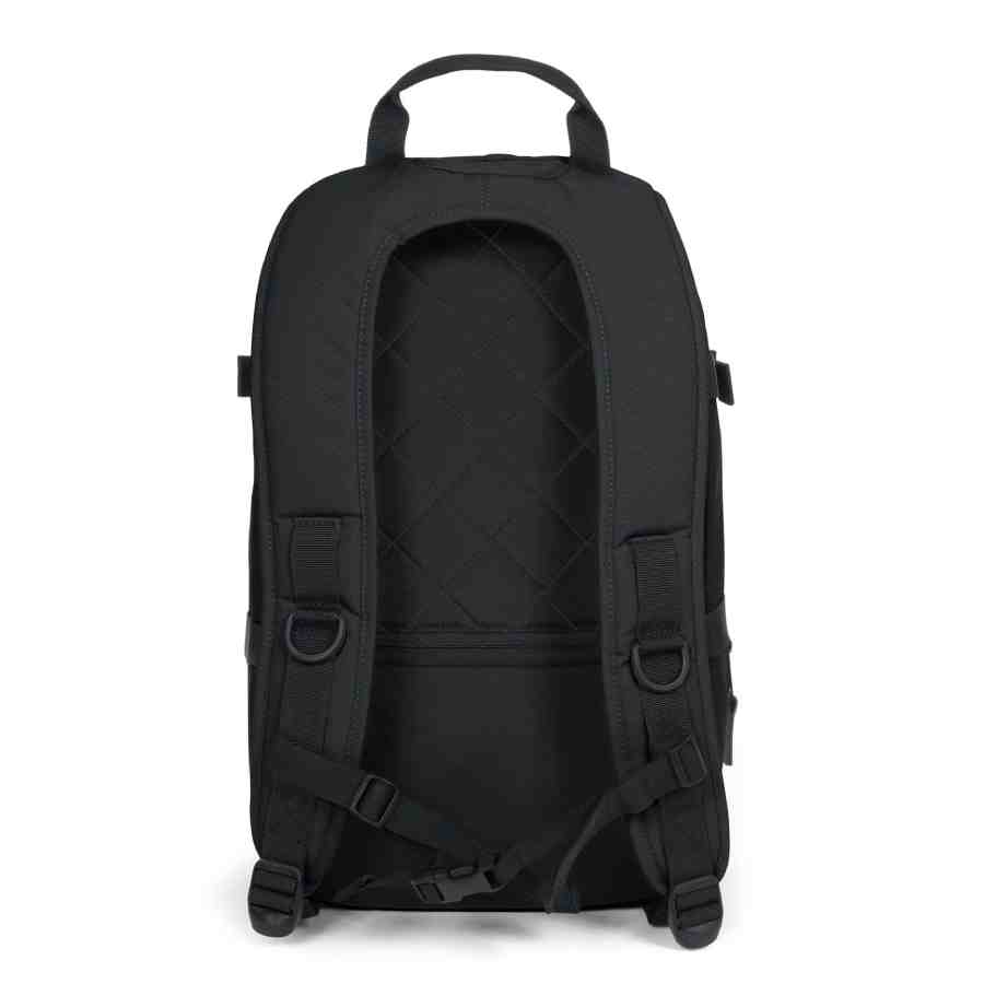 Eastpak zwarte rugtas met elastieken aan de voorkant en vele handige vakken. Deze tas heeft een laptopvak voor 15 inch en is 100% Vegan en bevat geen dierlijke producten. Aan de zijkant heeft deze rugzak plek voor een fles water. Ook aan de voorkant kun je deze tas vastmaken met de borstbanden.