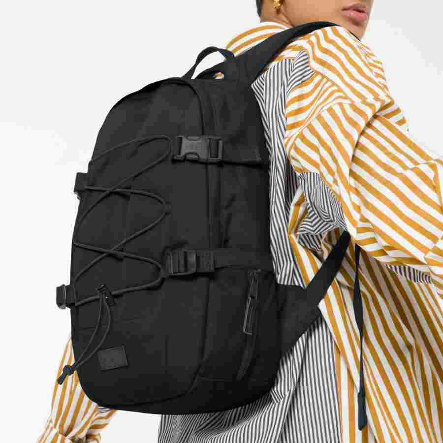 Zwarte rugtas Borys van Eastpak met elastieken en laptopvak voor 15 inch