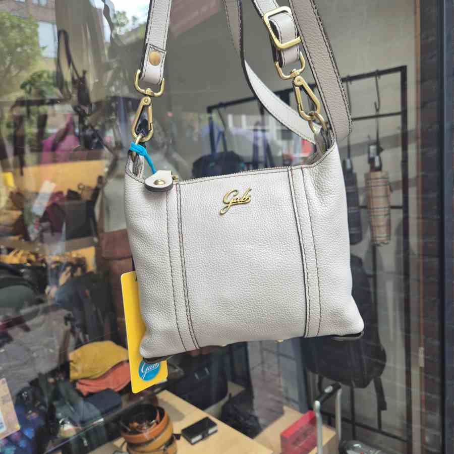 Kleine leren schoudertas van het Italiaanse merk Gabs met geschuurd, goudkleurig beslag