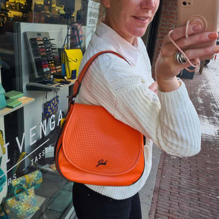 Gabs Norma met klep en afneembare schouderband in oranje met ringen