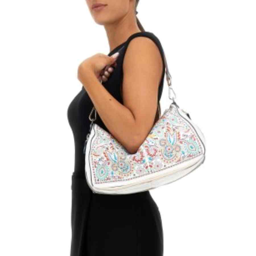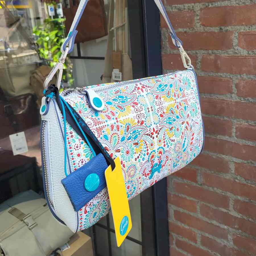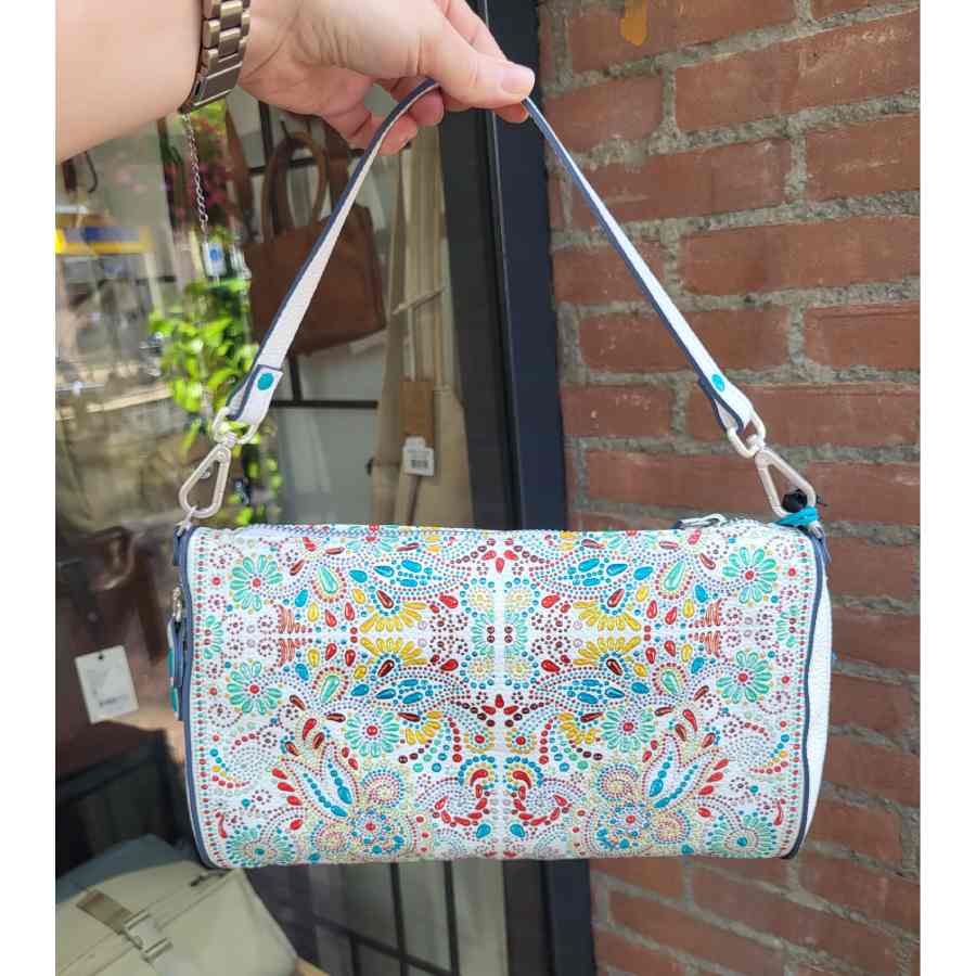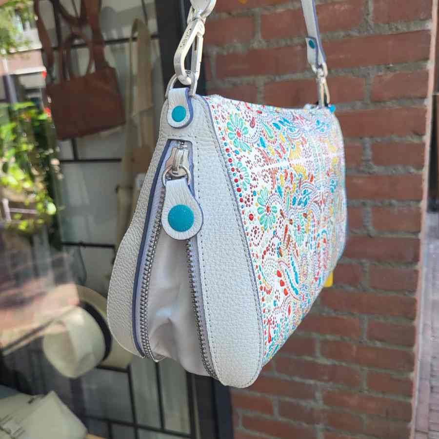 Wit leren schoudertas van het Italiaanse merk Gabs met leuke print