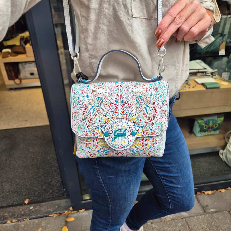 Prachtige tas van echt kalfsleer met prachtige print, Maioliche Basic. Deze leren tas combineert een gedurfde print met hoogwaardige materialen voor een unieke en duurzame look. Het hoofdgedeelte is vervaardigd uit 100% kalfsleer, wat garant staat voor een luxueuze afwerking en langdurig gebruik. De binnenvoering is volledig van 100% katoen. Deze tas is perfect voor dagelijks gebruik of als statement piece bij een bijzondere gelegenheid. We hebben in onze winkel een heel grote collectie Gabs tassen en portemonnees. Dus kom gezellig langs in onze winkel in Delft of kijk online.