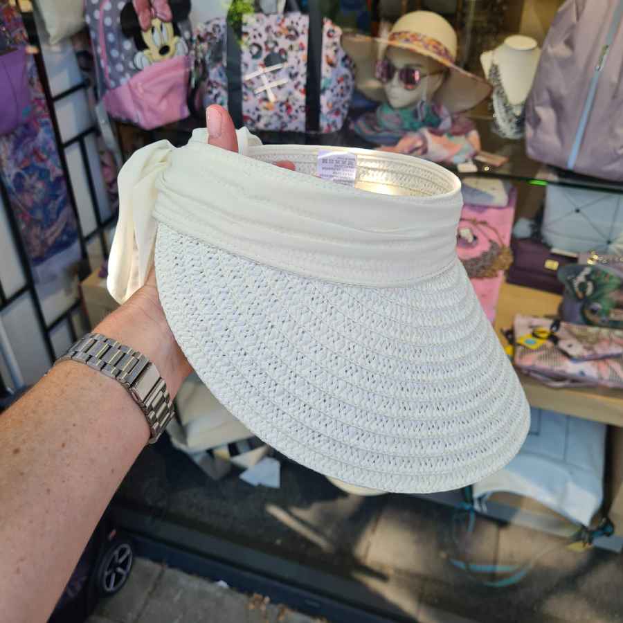 Creme wit / beige zonneklep met strik die rondom het gezicht compleet beschermd