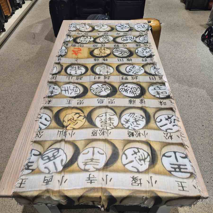 Lange sjaal Gabs beige met Aziatische tekens