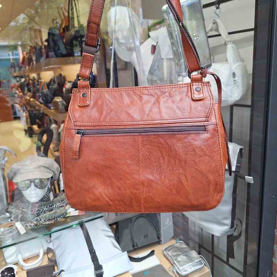 Rise of Rose schoudertas met ronde klep en veel handige vakken in een mooie brandy / cognac kleur