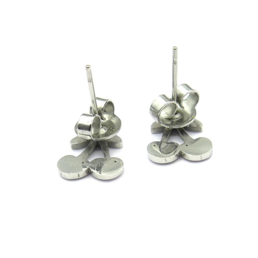 Kersen oorknopjes met subtiel steentje van stainless steel in zilverkleur