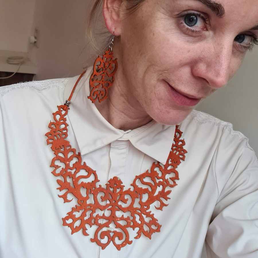 Met deze oorbellen heb je zeker een uniek sieraad. Alles is namelijk gemaakt van kurk. Kurk is heel licht in gewicht en duurzaam. Ook is het anti-allergisch en heeft het een prachtige felle kleur. Zolang de voorraad strekt heb ik er ook bijpassende oorbellen bij. Stuur me een berichtje voor meer informatie.