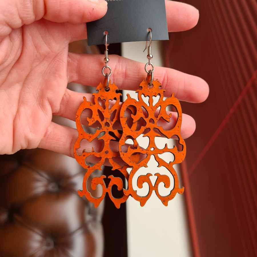 Oorbellen gemaakt van kurk in een prachtige oranje kleur