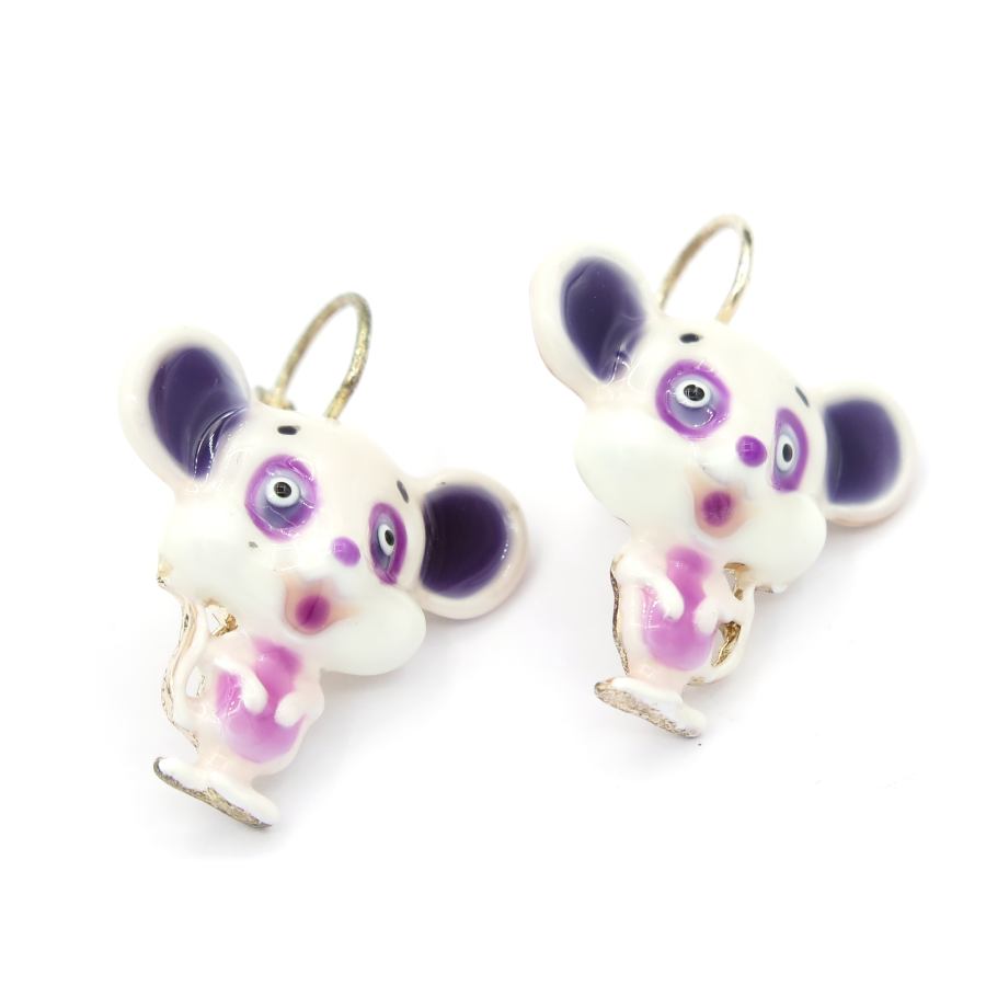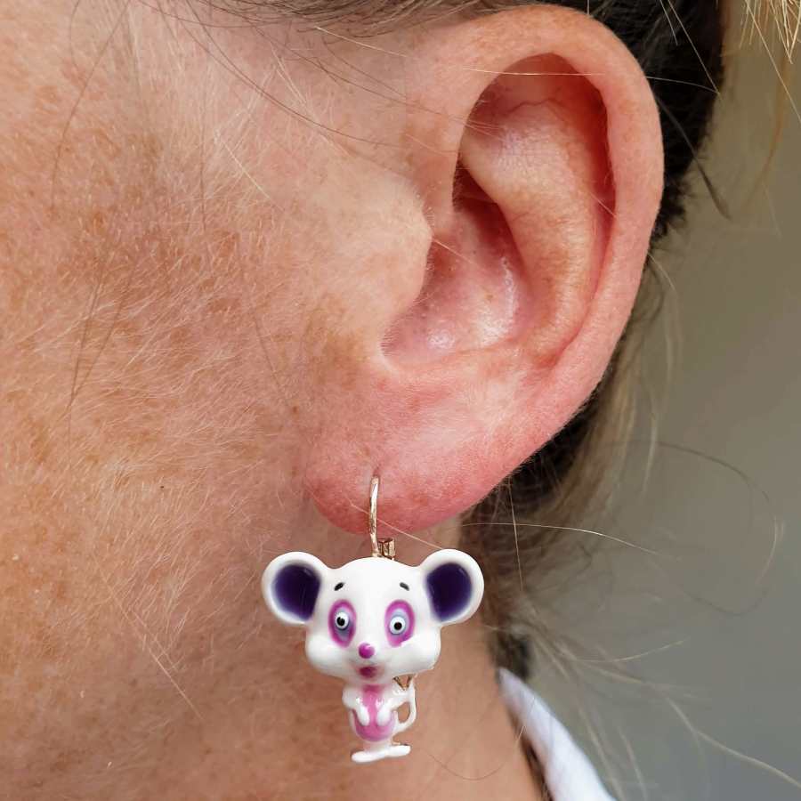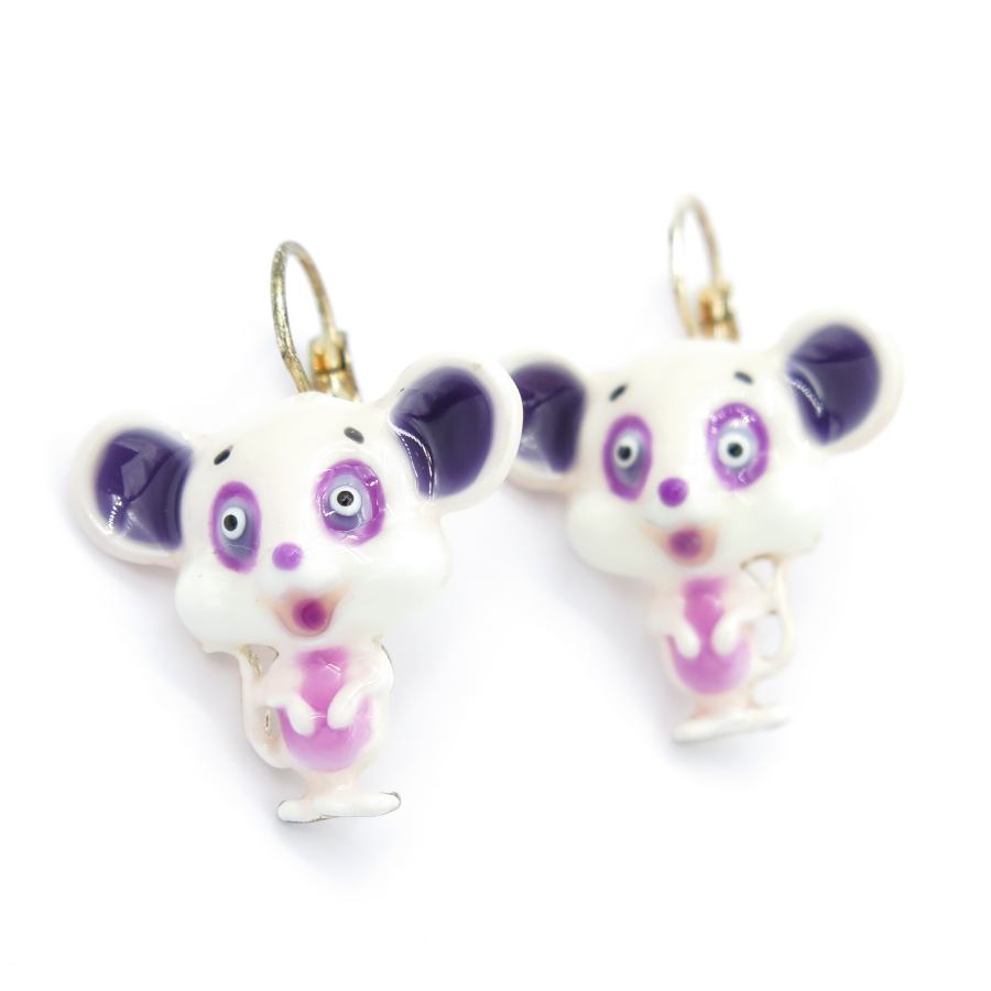 Grappige oorbellen met cartoon figuren muisjes met paarse oren