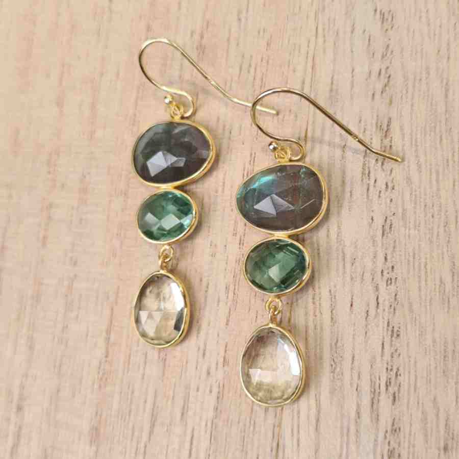 Oorhangers gemaakt van echt goud en stenen Toermalijn / Amethist / Labradoriet