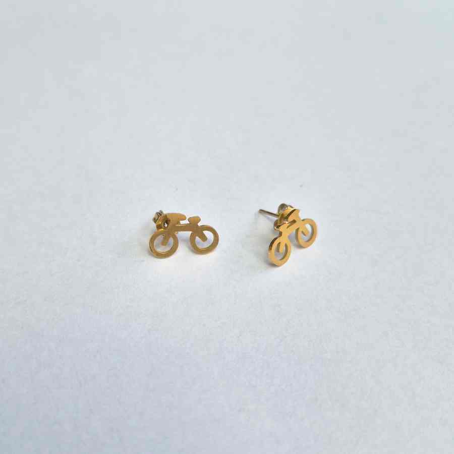 Leuke oorbellen met fietsen in goudkleur gemaakt van stainless steel