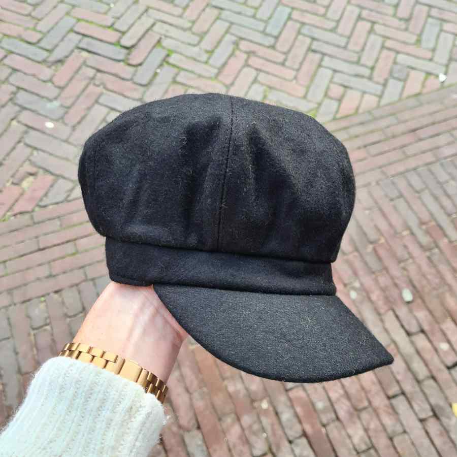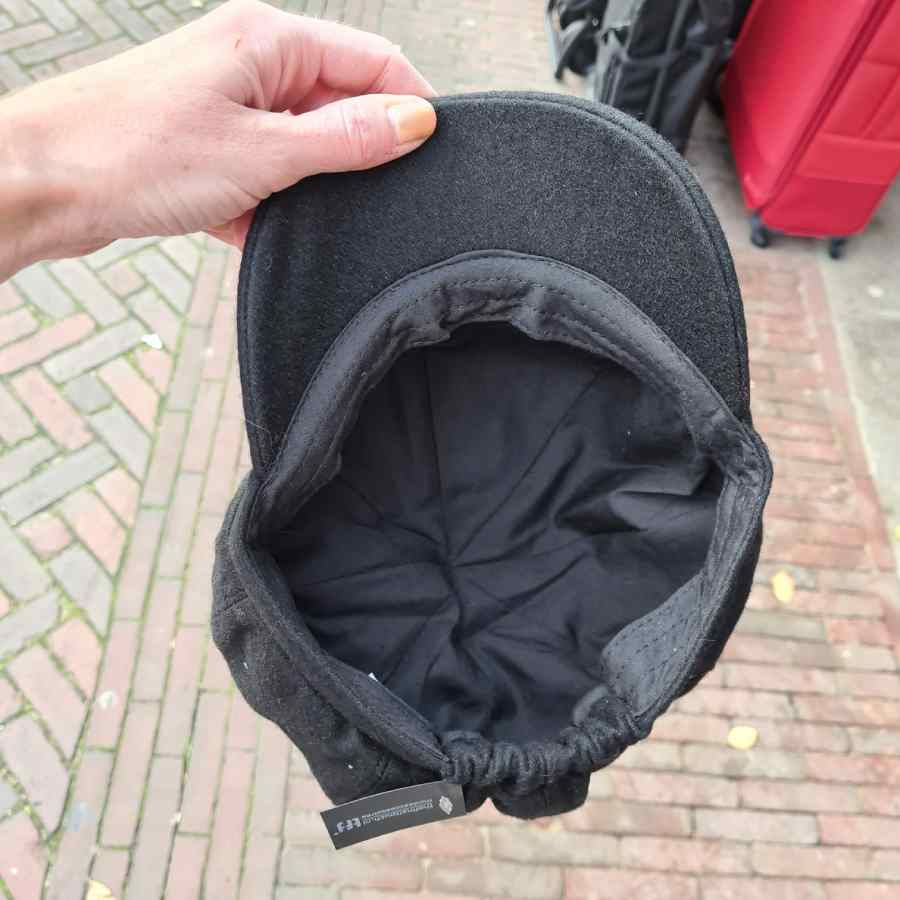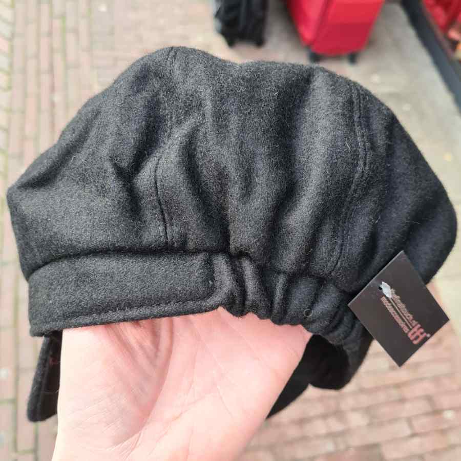 Wollen petje in zwart met klepje en elastiek aan de achterkant