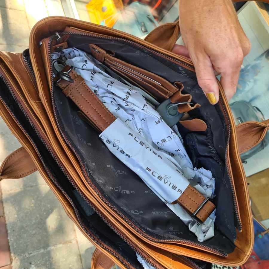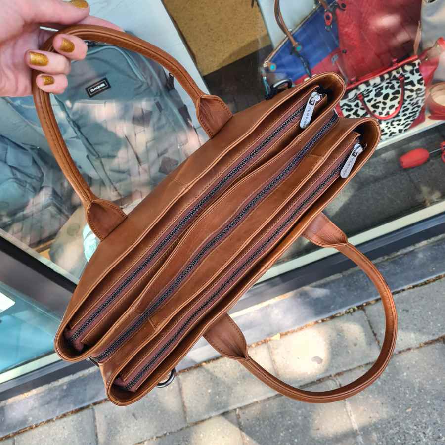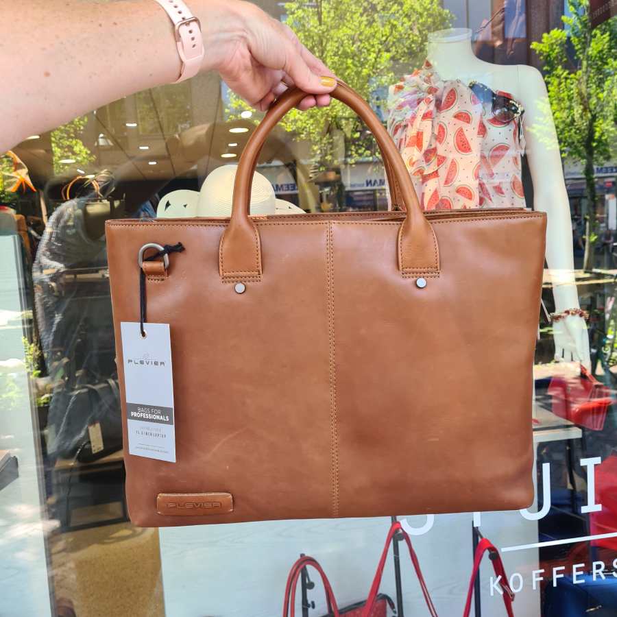 Plevier laptop werktas cognac drie vakken