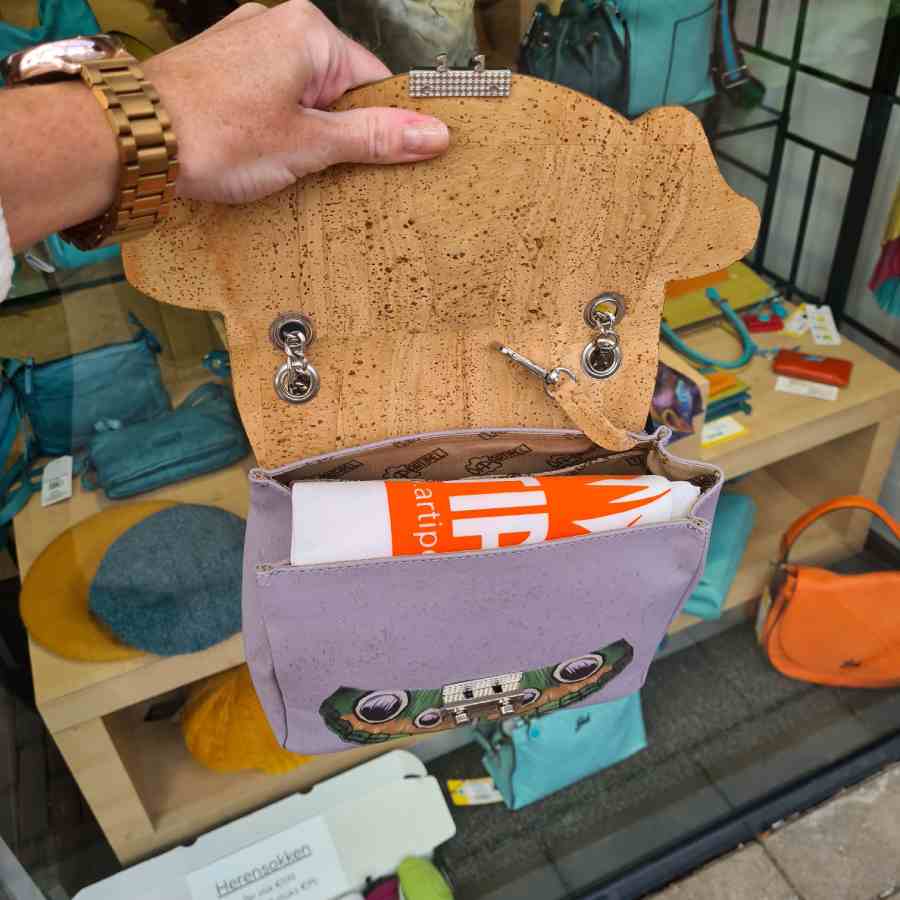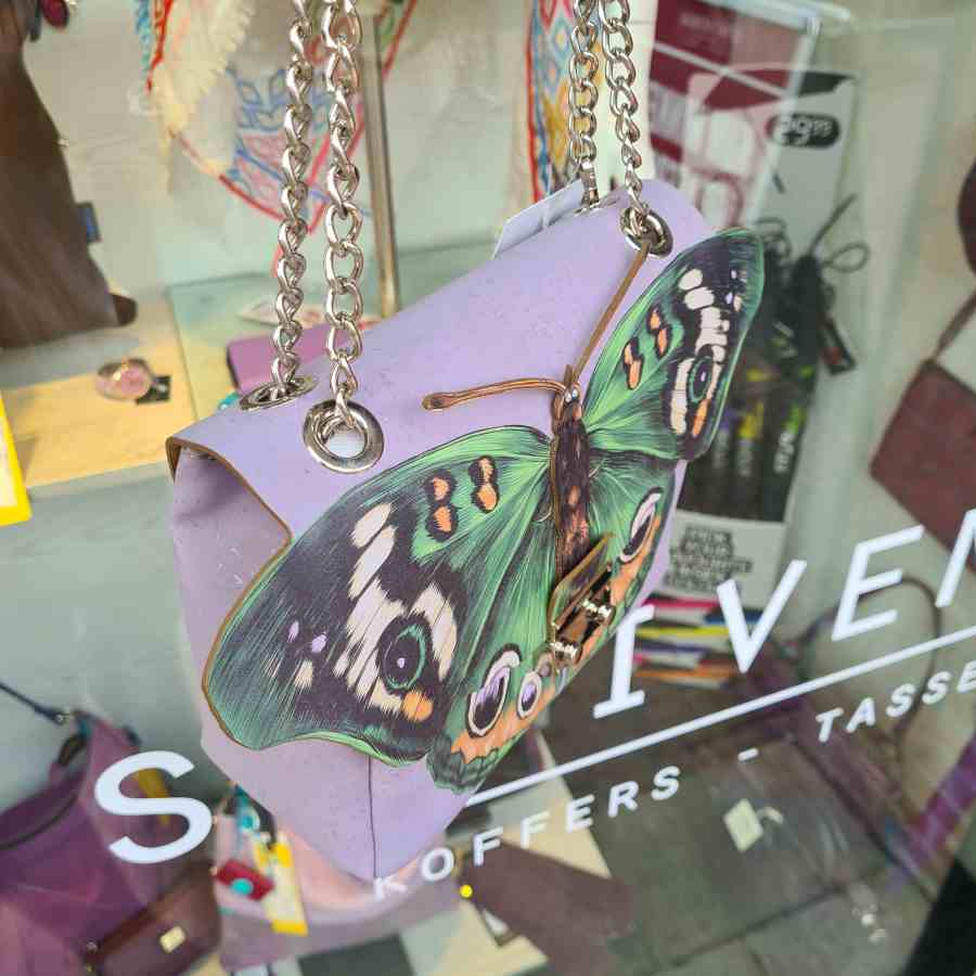 Tas van kurk in paars met prachtige vlinder. De voelsprieten van de vlinder steken mooi uit en ook de ogen van de vlinder zijn mooi afgewerkt met steentjes. De zilveren ketting is op elke lengte vast te zetten zodat je een handtas, schoudertas én crossbody tas kunt maken. Echt een heel gave tas die goed afsluit. Ook aan de binnenkant heeft deze vlindertas nog handige vakjes.