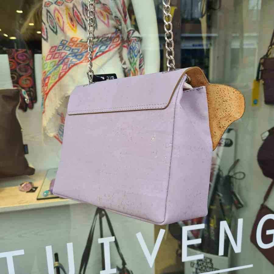 Vlinder tas gemaakt van en kurk met metalen ketting die je kunt verstellen