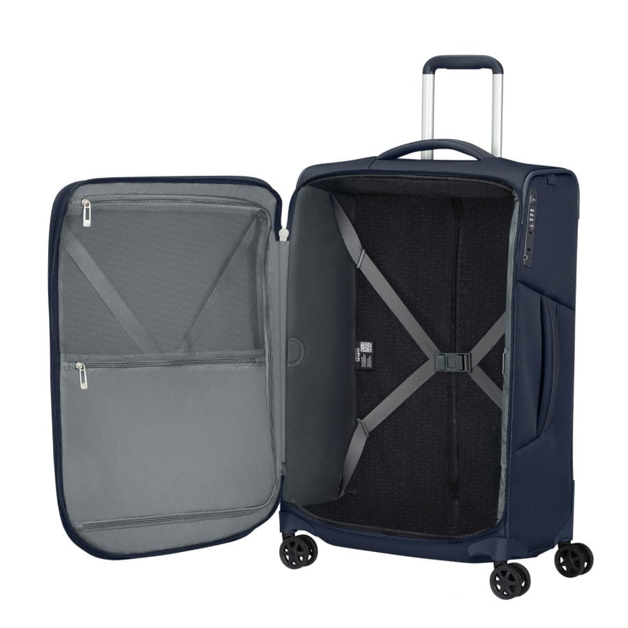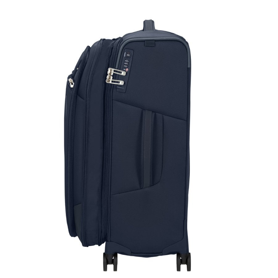 De nieuwste serie van Samsonite is de Respark gemaakt van gerecyclede plastic flessen. Deze medium expandable spinner (nummer 143330) heeft handige wielen waarmee je gemakkelijk beweegt. Deze 67 cm is een medium maat zachte koffer waar maximaal 92 liter in past. Het voordeel van een zachte koffer is dat je voorvakken hebt. Deze vakken zijn allemaal af te sluiten met de kabel die door de lopers van de ritsen te halen zijn.