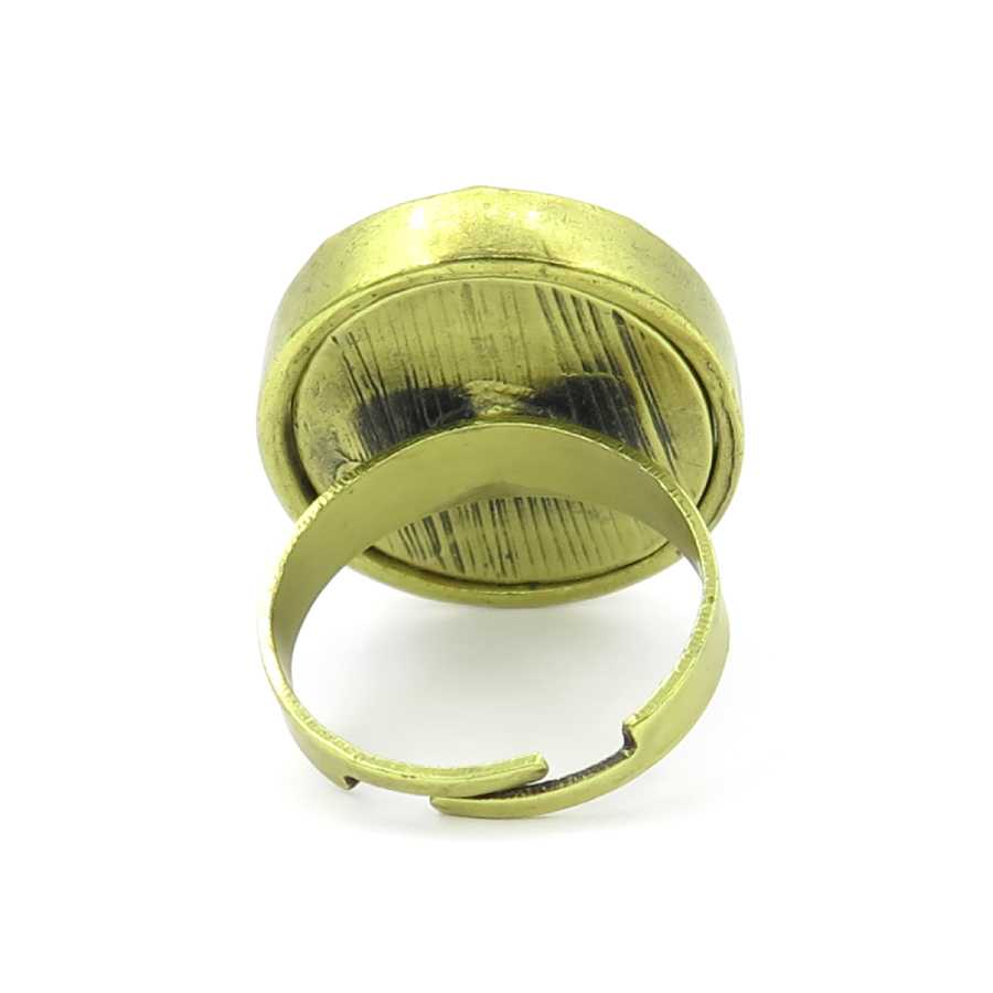 Goudkleurige ring met donkerrode ovale steen met verstelbare achterkant. De medaillon is 2.5 x 2 cm groot.