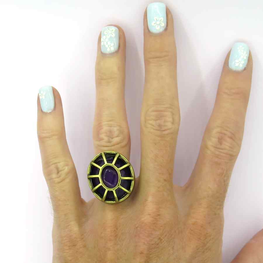 Goudkleurige ring met paarse steen in ovale vorm met verstelbare achterkant