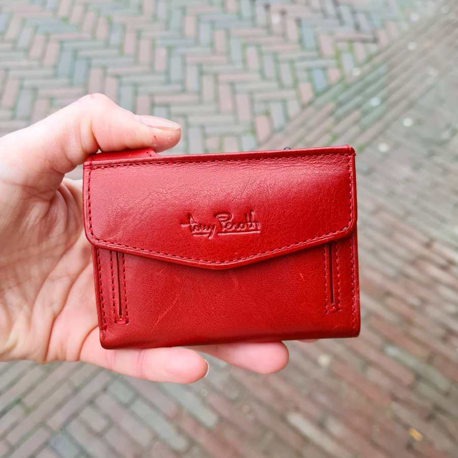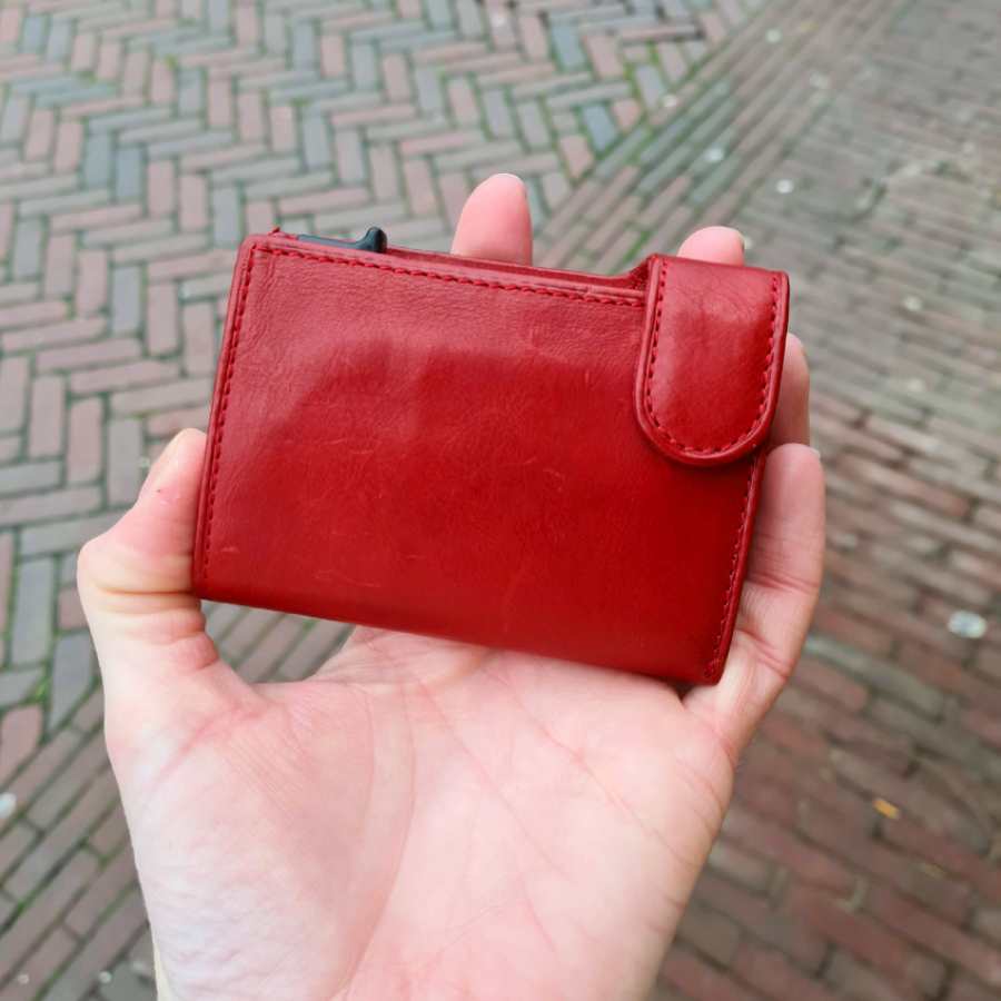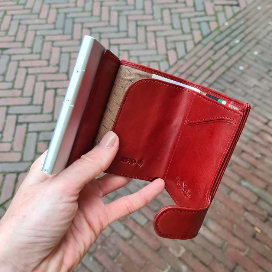 Rode leren portemonnee met RFID bescherming en ruimte voor muntgeld én briefgeld