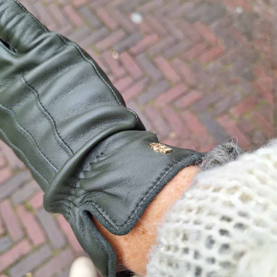 Donker groen leren dames handschoen van Roeckl met een stoere uitstraling en een heerlijk warme wollen voering. Daarnaast komt deze handschoen in verschillende kleuren en maten, zolang de voorraad strekt. Wacht daarom niet te lang of neem contact op om meer te weten.