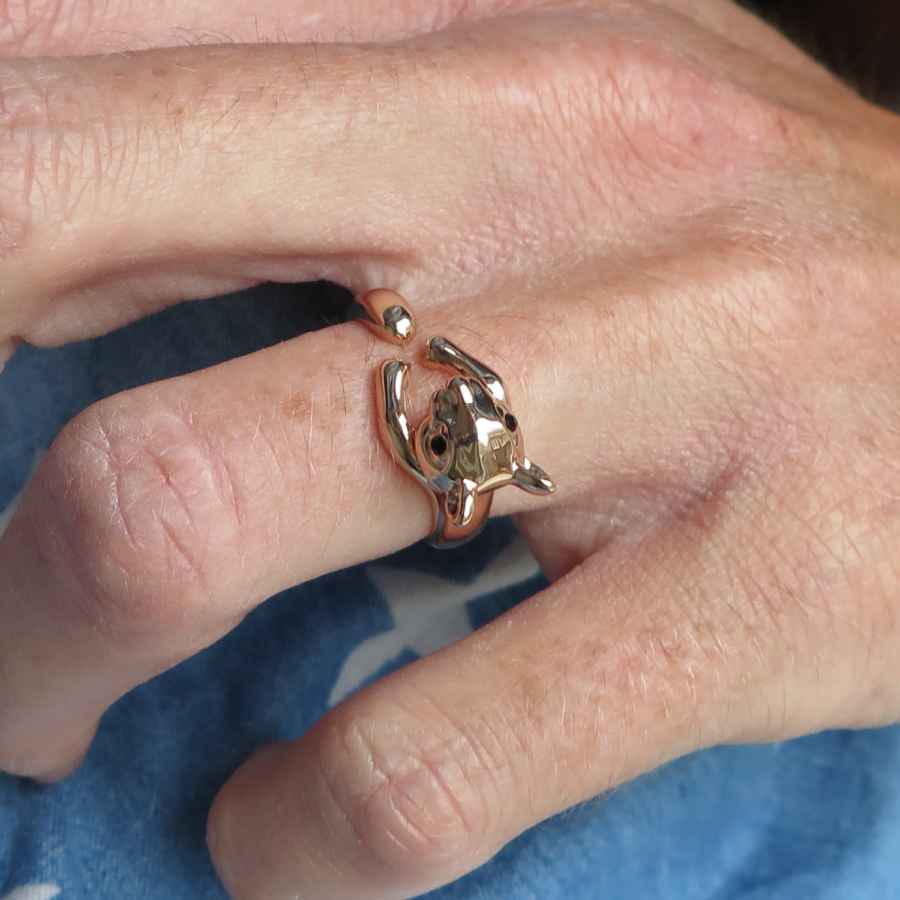 Schattige ring met knaagdier die zich rond je vinger klemt in rosé kleur
