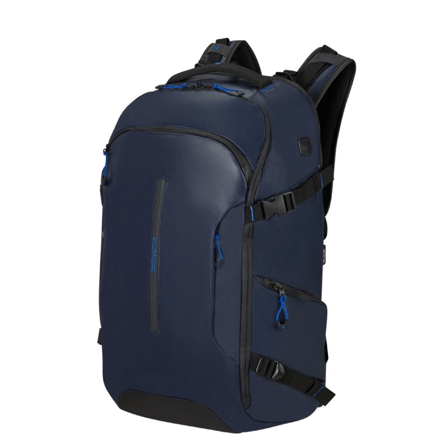Medium grote reis rugzak Ecodiver van 38 liter. Gemaakt van gerecycled materiaal en perfect voor outdoor activiteiten. De ritsen zijn waterdicht en ook het materiaal kan goed tegen vuil en regen. Deze rugzak heeft een apart laptopvak én een aansluiting voor een powerbank. Aan de achterkant kun je deze tas nog over een trolley schuiven en hebben de schouderband een extra borstband en heupband. Kortom, een super veelzijdige rugtas die je waardevolle spullen beschermd en er ook gaaf uitziet. We hebben een grote collectie Samsonite rugzakken en meer van deze Samsonite serie Ecodiver. Dus kijk lekker rond online, of kom langs in onze winkel in Delft.