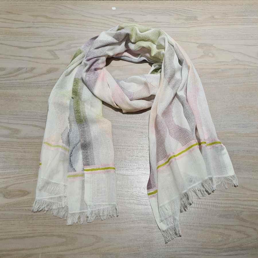 Prachtige sjaal van katoen met mooie print in zachte, pastel kleuren. Deze sjaal is heerlijk zacht en gemaakt van natuurlijk materiaal.