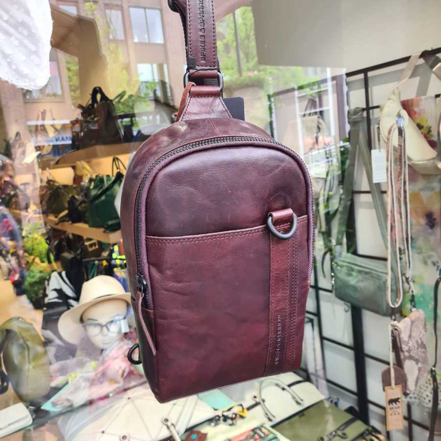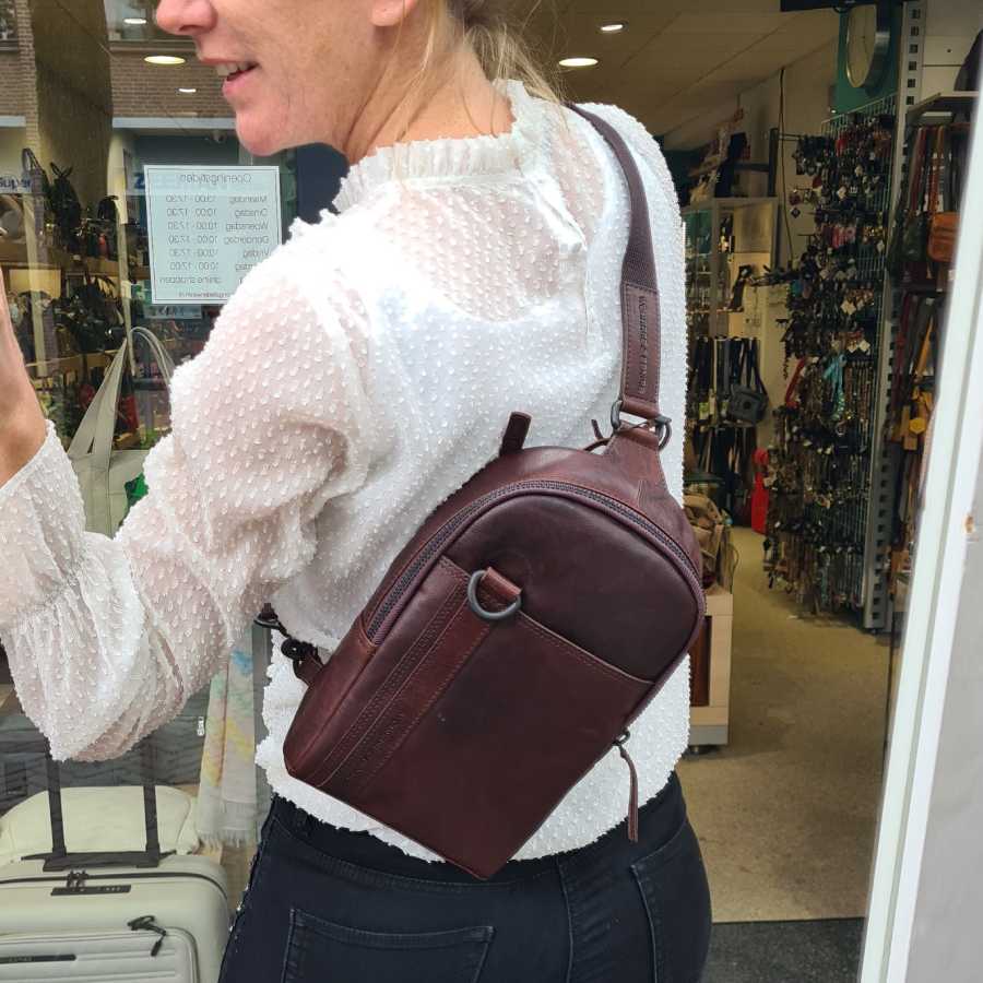 Stoere slingbag met enkele band in bruin van het Nederlandse merk Spikes and Sparrow