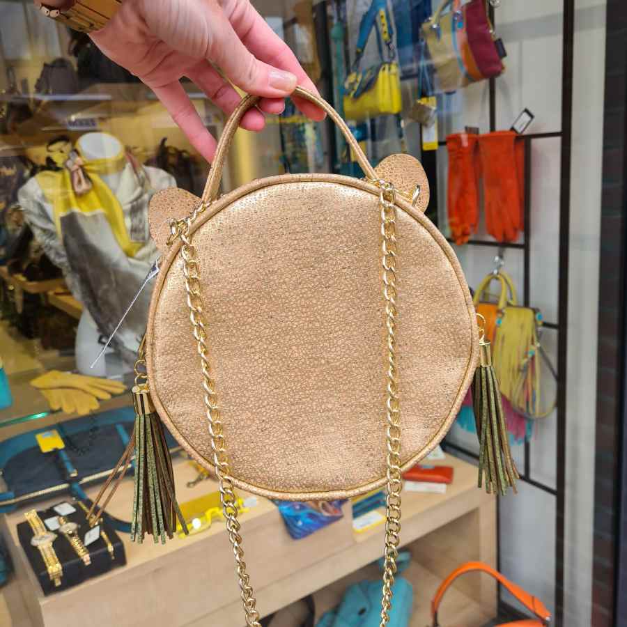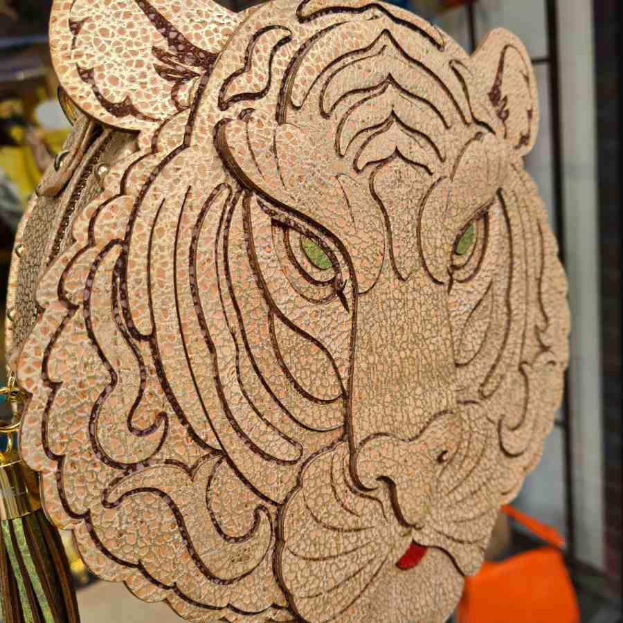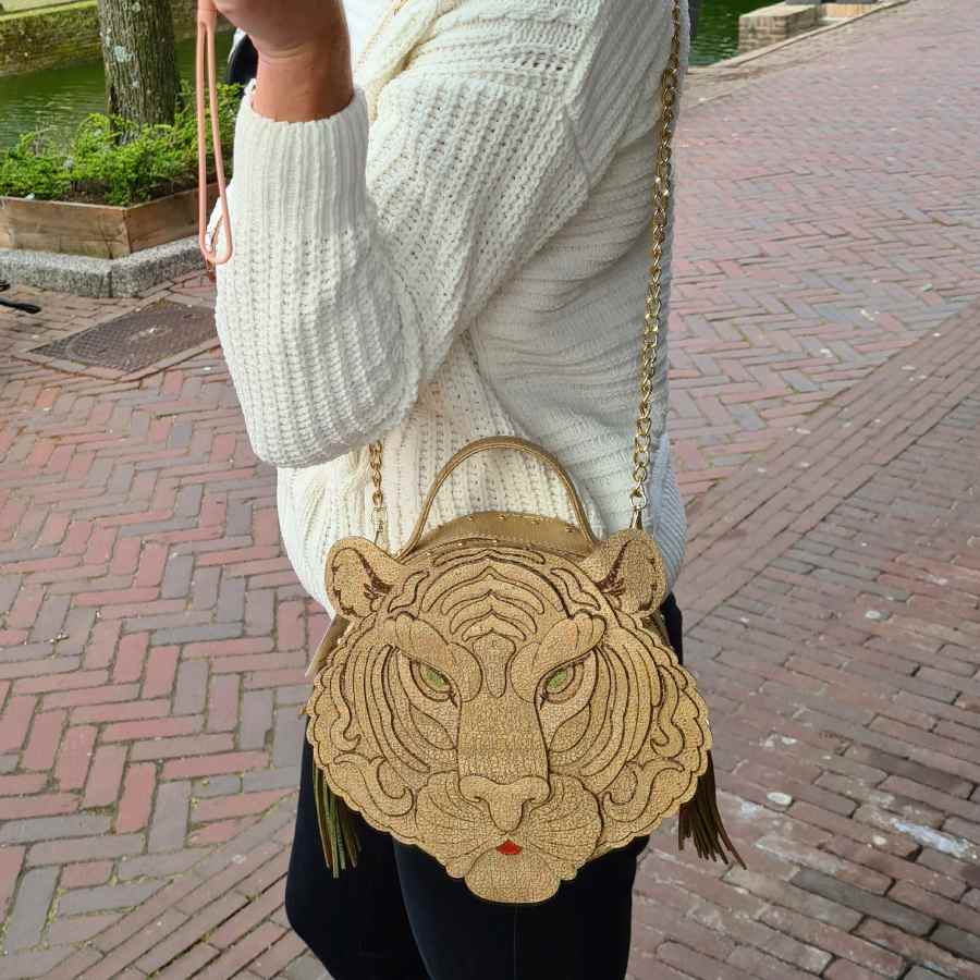 Tas met tijger gemaakt van kurk in goudkleur met ketting