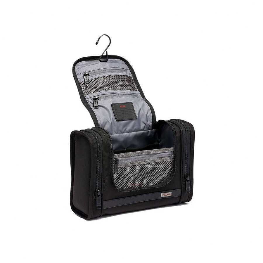 Tumi toilettas van ballistisch nylon van de serie Alpha 3 met handige haak om op te hangen