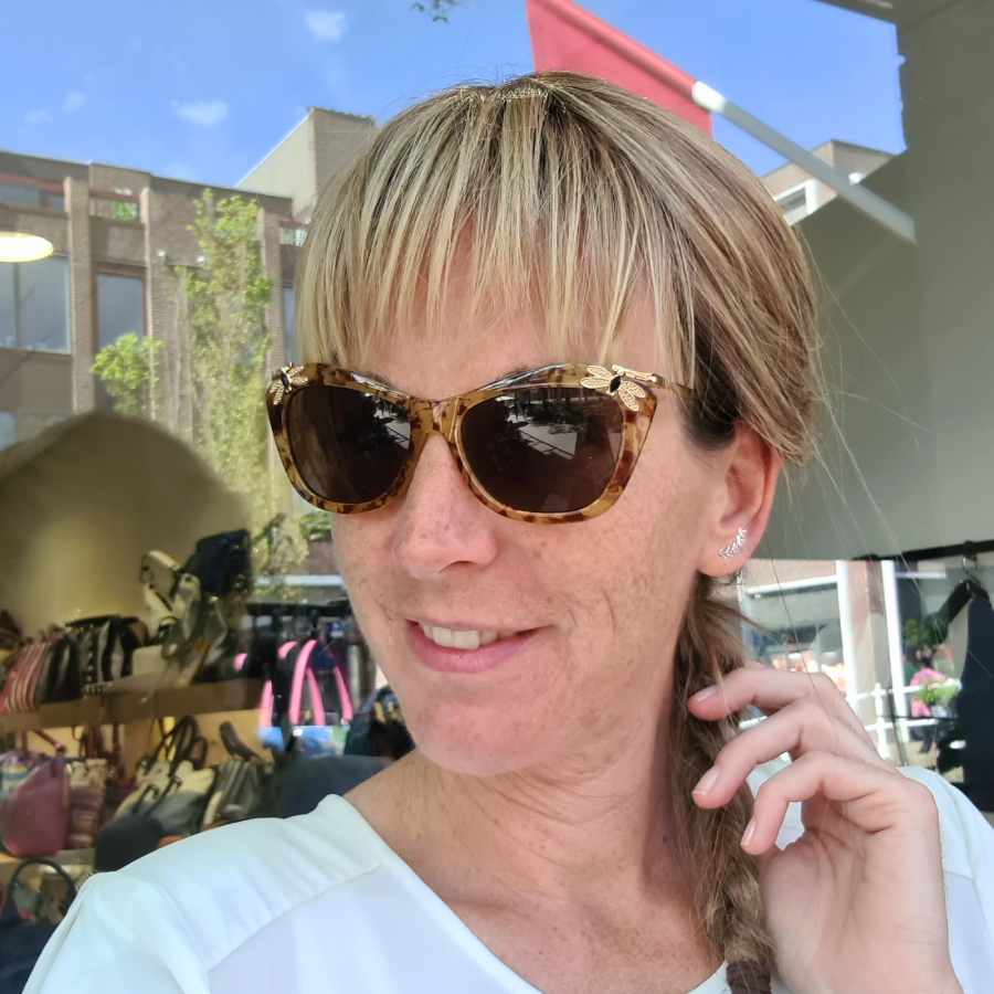 Trendy zonnebril met smalle pootjes en vlinders op de uiteinden van de pootjes en op de hoeken van het glas. De glazen zijn 100% UV beschermend en beschermen je ogen tegen de schadelijke straling van de zon. Bij elke zonnebril krijg je een handig opberghoesje om je zonnebril langer mooi te houden.