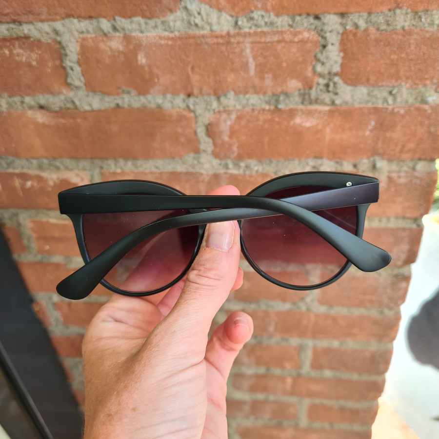 Modische zonnebril met mat zwart montuur en goudkleurige rondjes aan de bovenkant (inclusief hoesje)