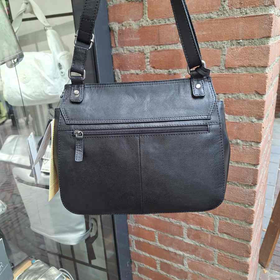 Rise of Rose schoudertas met ronde klep en veel handige vakken in zwart